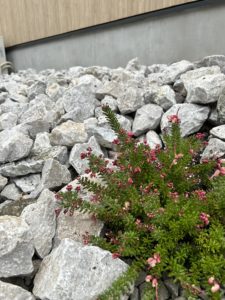 弊社のお店の前にも植えてあるのですが、昨今の主流は「自然の環境を模した岩を組み合わせて作る、ワイルドな雰囲気なお庭」が流行っています。