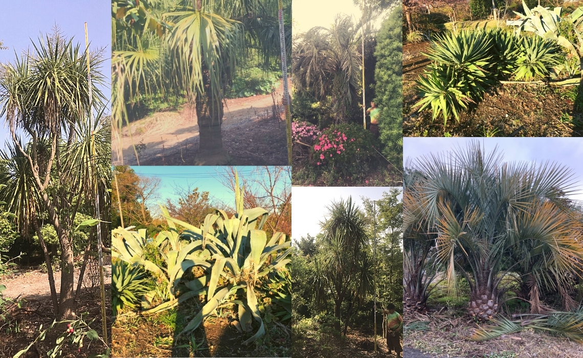 弊社の植物をみなさまにご覧いただくと、「え!大渕でこんな大きく育つの!?」と驚かれることも多いです。弊社では毎年、新しい品種で越冬できるかどうか試しています。今年はおそらく大渕が限界地であろうといわれていおります「南洋杉」を試しています。